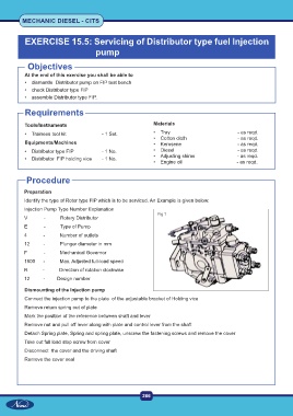 EXERCISE 15.5: Servicing of Distributor type fuel Injection