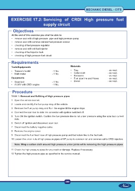 EXERCISE 17.2: Servicing of CRDI High pressure fuel
