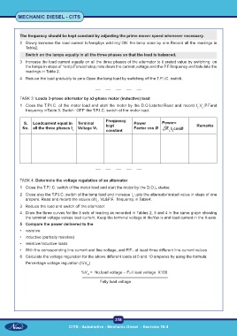 2 Close also the T.P.I.C. switch of the lamp load and increase I upto the alternator’srated value in steps of one