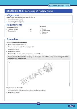 It is useless to dismantle the coupling on the engine side. Motor pump reassembling should be