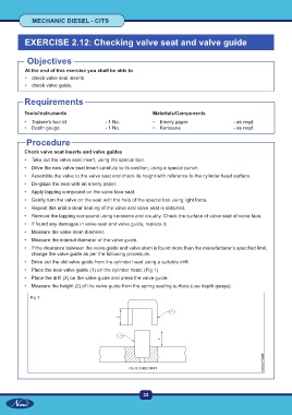 • Remove the lapping compound using kerosene and visually. Check the surface of valve seat of valve face.