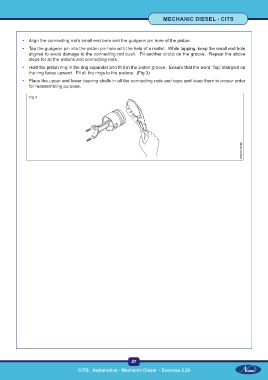 • Tap the gudgeon pin into the piston pin hole with the help of a mallet. While tapping, keep the small end hole
