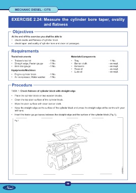 • Bore dial gauge - 1 No. • Kerosene - as reqd.