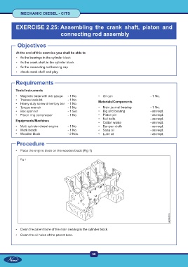 • Multi cylinder diesel engine - 1 No. • Baniyan cloth - as reqd.