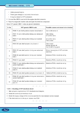 S. No. VVT generic OBD II code Possible causes and areas to be checked