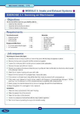 • 4 cylinder petrol/diesel engine - 1 No. • Baniyan cloth - as reqd.