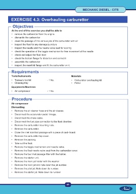 • Trainee’s tool kit - 1 No. • Carburetror overhauling kit