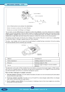 • Unburnt Hydrocarbons are oxidized into water/steam.
