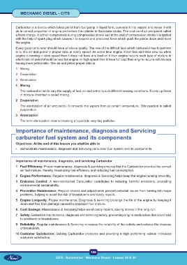 • demonstrate maintenance, diagnosis and Servicing carburetor fuel system and its components.