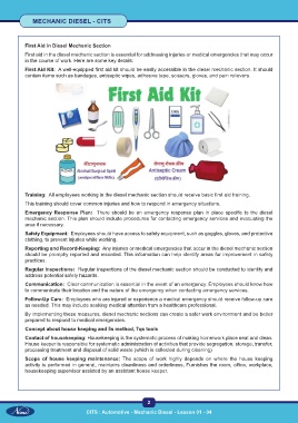First aid in the diesel mechanic section is essential for addressing injuries or medical emergencies that may occur