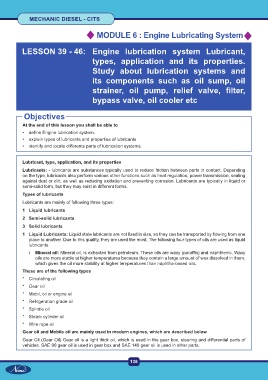 LESSON 39 - 46: Engine lubrication system Lubricant,
