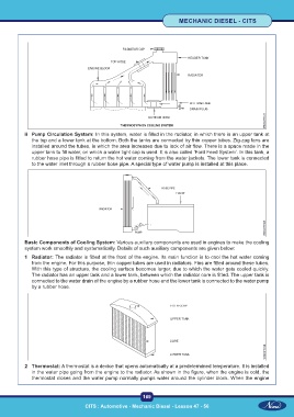 1 Radiator: The radiator is fitted at the front of the engine. Its main function is to cool the hot water coming