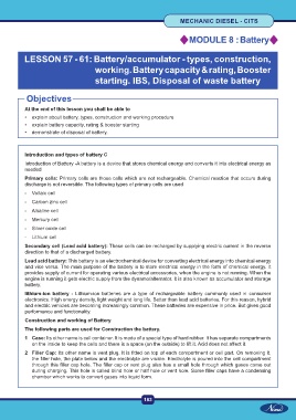 LESSON 57 - 61: Battery/accumulator - types, construction,