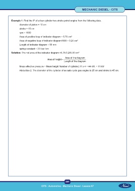 Abduction 2. The diameter of the cylinder of an auto cycle gas engine is 25 cm and stroke is 45 cm.