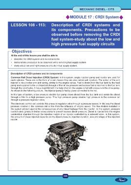 LESSON 108 - 113: Description of CRDI systems and