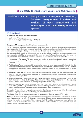 LESSON 121 - 125: Study about PT fuel system, definition,