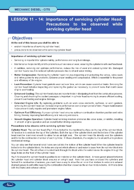 LESSON 11 - 14: Importance of servicing cylinder Head-