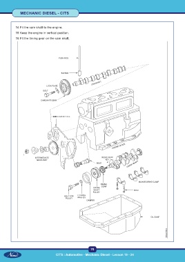 MECHANIC DIESEL - CITS 14 Fit the cam shaft to the engine. 15 Keep the engine in vertical position. 16 Fit the timing gear on the cam shaft. 70 CITS : Automotive - Mechanic Diesel - Lesson 19 - 24