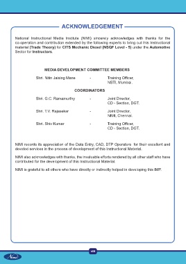 National Instructional Media Institute (NIMI) sincerely acknowledges with thanks for the