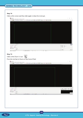 SEWING TECHNOLOGY - CITS Step 18 : Click on the screen and then click again to draw the rectangle. Step 19 : Click on the Zoom In Icon From the tool bar to Zoom on Top Corner Point 154 CITS : Apparel - Sewing Technology - Exercise 9