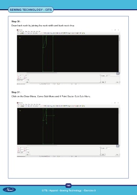 SEWING TECHNOLOGY - CITS Step 30 : Draw back neck by joining the neck width and back neck drop Step 31 : Click on the Draw Menu, Curve Sub-Menu and 4 Point Bezier Sub-Sub-Menu. 160 CITS : Apparel - Sewing Technology - Exercise 9