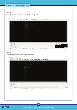 SEWING TECHNOLOGY - CITS Step 34 : Enter the shoulder measurement in the bottom right corner Step 35 : Apply the measurement on the width of the neck. 162 CITS : Apparel - Sewing Technology - Exercise 9