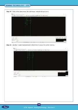 SEWING TECHNOLOGY - CITS Step 38 : Click on the draw menu, line sub-menu, vertical sub-sub-menu. Step 39 : Join the ¼ waist measurement to the bottom to apply the center marking 198 CITS : Apparel - Sewing Technology - Exercise 9