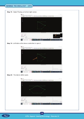 SEWING TECHNOLOGY - CITS Step 18 : Select Tracing on bottom right corner. Step 19 : Left click on the sleeve center line to open it. Step 20 : The sleeve will be open. 316 CITS : Apparel - Sewing Technology - Exercise 13