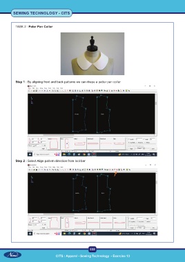 SEWING TECHNOLOGY - CITS TASK 2 : Peter Pan Collar Step 1 : By aligning front and back patterns we can drape a patter pan collar Step 2 : Select Align pattern direction from tool bar 332 CITS : Apparel - Sewing Technology - Exercise 13