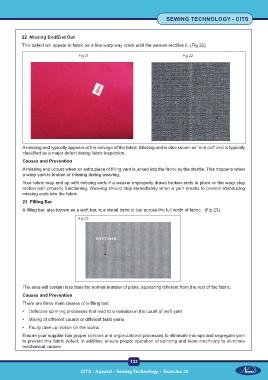 This defect will appear in fabric as a fine warp-way crack until the weaver rectifies it. (Fig 22)
