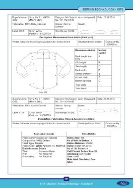 CITS : Apparel - Sewing Technology - Exercise 31 CITS : Apparel - Sewing Technology - Exercise 31