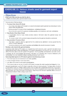 EXERCISE 33: Various sheets used In garment export