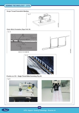 SEWING TECHNOLOGY - CITS Single Thread Chainstitch Machine Fig 17 Chain Stitch Formation (Figs 18 & 19) Fig 18 Fig 19 Practice on 103 – Single Thread Blind hemming (Fig 20) Fig 20 162 CITS : Apparel - Sewing Technology - Exercise 34