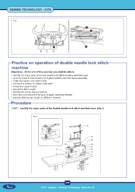 TASK 1: Identify the major parts of the double needle lock stitch and their uses. (Fig 1)