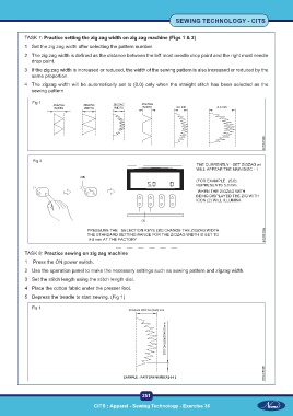 TASK 7: Practice setting the zig zag width on zig zag machine (Figs 1 & 2)
