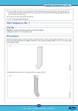 CITS : Apparel - Sewing Technology - Exercise 41 CITS : Apparel - Sewing Technology - Exercise 41