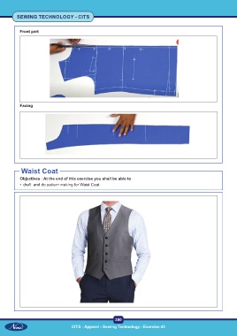 SEWING TECHNOLOGY - CITS Front part Facing Waist Coat Objectives : At the end of this exercise you shall be able to • draft and do pattern making for Waist Coat. 380 CITS : Apparel - Sewing Technology - Exercise 43