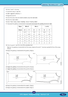 17 Calculate the grading increments for each point and prepare the grading increment table.