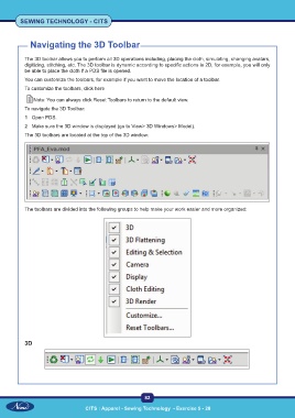 digitizing, stitching, etc. The 3D toolbar is dynamic according to specific actions in 2D, for example, you will only
