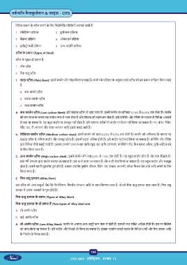 C. उ काब न ील (High carbon steel): इसम काब न की मा ा 0.5% से 1.5% तक होती है। यह ब त कठोर होता है और कम िघसता है।