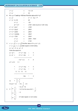 5 x + y = ; x - y = Find the value of 8 x y (x + y ) 1 = x − 1 x 3 - −x x 1 x x 2 + 1 x 2 = 16 + 2
