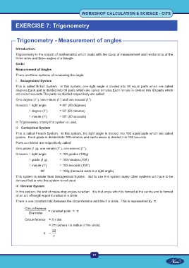 (i) Sexagesimal Systemof measuring the angle: minutes.Each minute is divided into 60 parts which are