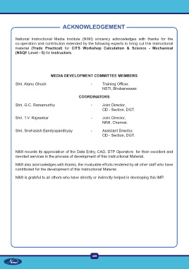 National Instructional Media Institute (NIMI) sincerely acknowledges with thanks for the
