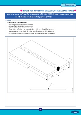 अ ास 14: 2 mm मोटी MS शीट पर ायर बट जॉइंट ैट थित म (OAW) (Square butt joint