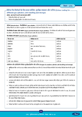 िविभ गैस िसल डरों के िलए कलर कोिडंग, सुरि त संचालन और ोरेज (Colour coding for