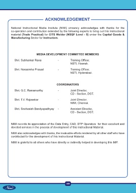 National Instructional Media Institute (NIMI) sincerely acknowledges with thanks for the