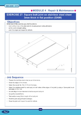 EXERCISE 27: Square butt joint on stainless steel sheet