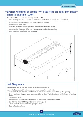 • Select a silicon bronze filler rod of 3mmø for the root run and 5mmø for the 2nd run.