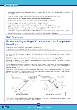 • prepare and bronze welding of single ‘V’ butt joint on cast iron plate of 6mm thick.