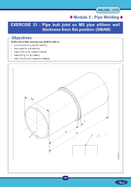 EXERCISE 33 : Pipe butt joint on MS pipe ø50mm wall